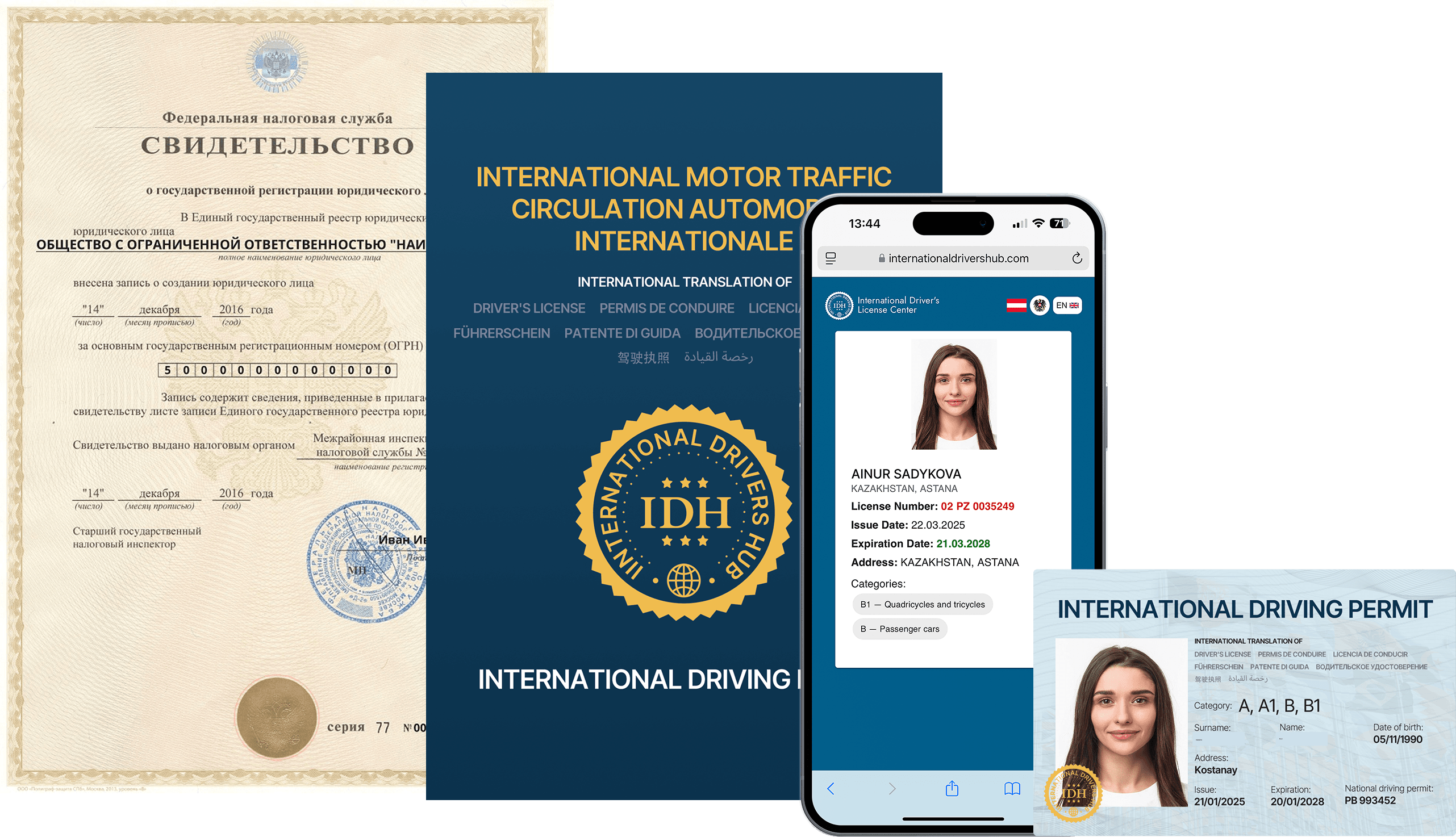 Мы являемся частью международной компании International Drivers Hub — одна из крупнейших организаций, регламентируюший выпуск международных водительских удостоверений (IDP), с центральными офисами в Вене и Женеве.